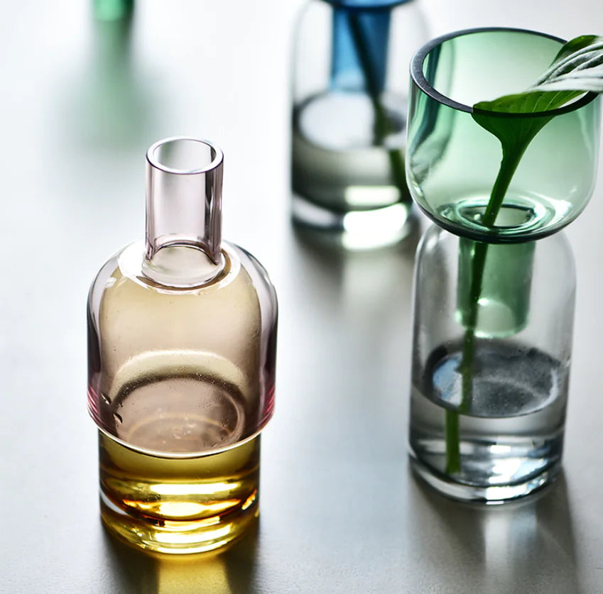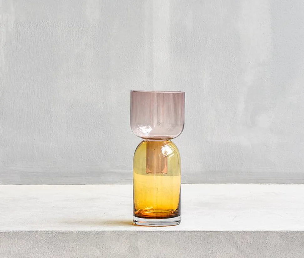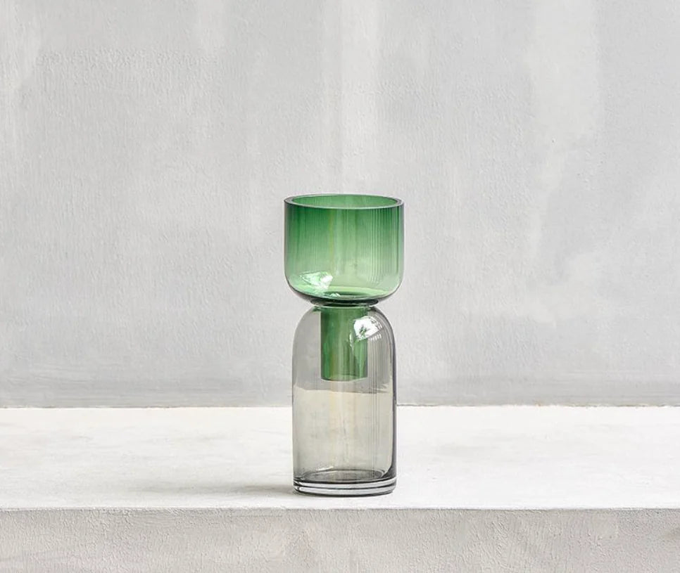 Perfect for fresh florals, dried stems, or as a standalone art piece, this vase transforms ordinary moments into living art. The rich glass hues and vintage-inspired silhouette add depth and warmth to modern, boho, or eclectic interiors, making it a striking focal point for any shelf, table, or windowsill.
